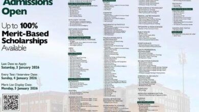 Shaheed Zulfiqar Ali Bhutto University of Law (SZABUL), KarachiAdmissions Spring 2026◾Sector: Govt◾Last Date to Apply: 12 January, 2026◾Entry Test: 15…