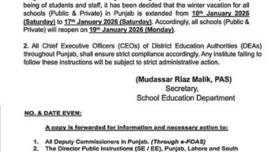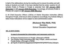 Winter vacation Notification GOVERNMENT OF THE PUNJAB SCHOOL EDUCATION DEPARTMENT Dated Lahore the, 10th January 2026. NOTIFICATION SO(ACAD-I)1-31/2025. In view…