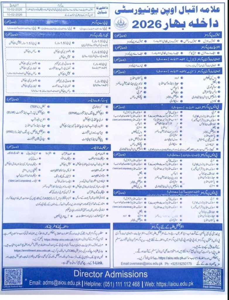 - AIOU داخلہ بہار 2026 کی آخری تاریخ کب ہے؟